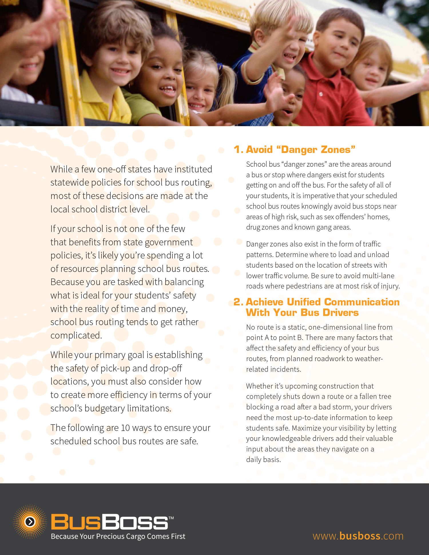 Enter your email address on this page and we’ll send you 10 Essential Ways To Schedule Safe School Bus Routes, an informative, free guide explaining critical guidelines to help ensure student safety through bus route optimization efforts.